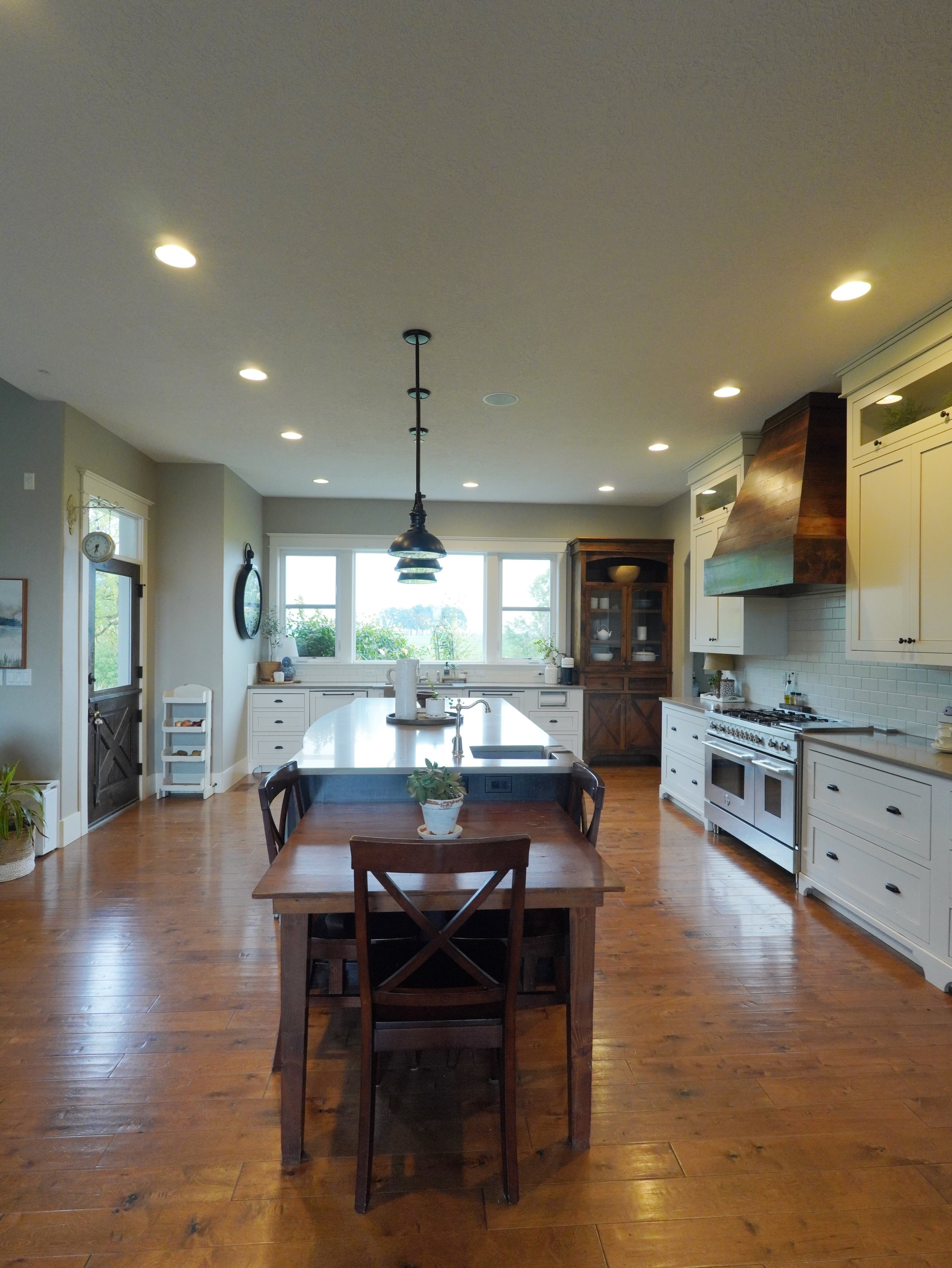 Located just south of Wilsonville, this new build equestrian property blends timeless traditional style with subtle modern moments. Warmly stained alder cabinetry paired with a soft white finish defines the kitchen, featuring an Italian stainless steel range, dual paneled dishwashers, and a custom baker’s hutch designed for both beauty and function.